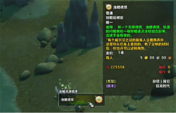 在《魔兽世界》11.0版本“地心之战”中,幻想蜃鱼人诱饵作为一款全新趣味玩具引起了不少玩家关注。该道具可通过击败特定精英怪并收集关键材料合成,具备较高的收藏价值。本攻略将为你详解各材料的获取途径与具体坐标,助你高效完成诱饵合成流程。