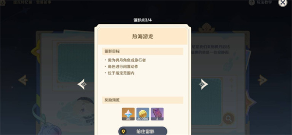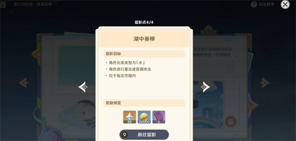 在《原神》5.8版本的活动“提瓦特忆画·雪幕前事”中,第二天需要完成【热海游龙】与【湖中垂柳】两个留影点。开始前请确保已完成前置任务并获得【派蒙的留影机】,在背包小道具中装备后才能使用。接下来小编带来原神提瓦特忆画雪幕前事第二天拍照位置一览,希望能够帮助到各位。