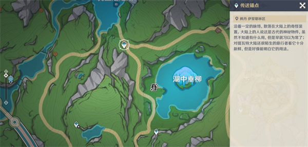 1、同样在活动页面【查看详情】,选择留影点【湖中垂柳】,点击放大镜并传送到附近锚点。