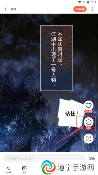 3、点击页面中间,会跳出菜单栏,点击右下角箭头所指评论图标;