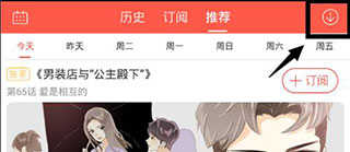 3、点击*上面“推荐”旁边的“下载符号”就可以将今天更新的漫画全部下载啦!(下载完成,下载符号会变成√)