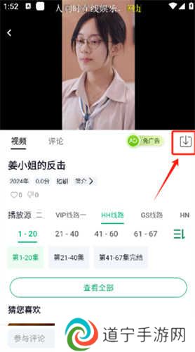 2、点击所选影视剧,进入播放页面,然后点击下载图标。