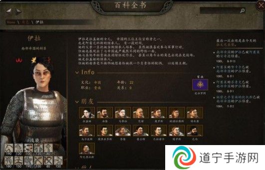 评价:人气蛮高的一个结婚对象,颜值还不错(身上的盔甲为颜值加分不少),战斗和管理属性也都挺高,性格还有1个正派标记,是一位非常适合战斗又适合管理城镇的女强人;缺点是在一众的差不多单身女贵族中颜值真的不是很高。